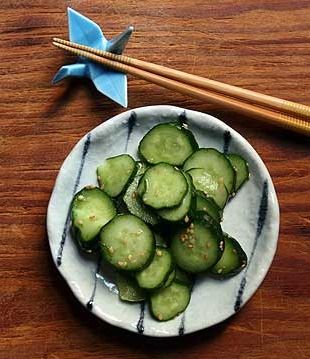 Огурцы, замаринованные в уксусе, называются судзукэ. В качестве маринующего агента обычно используется рисовый уксус, который придает хрустящую текстуру и кисло-сладкий вкус получаемым огурцам. Однако рисовый уксус имеет низкую кислотность, поэтому огурцы сюдзукэ не будут долго храниться в холодильнике. - Мисо (мисодзукэ)
