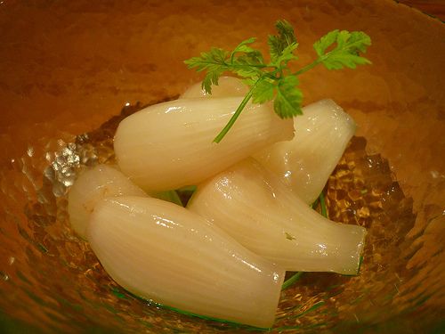 Раккё – это сладкие маринованные луковицы, которые подают к японскому карри. Раккё придает сладковатый хрустящий вкус, который, как и фукудзинзукэ, помогает усилить острый и соленый вкус карри.