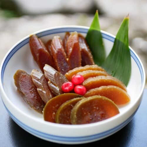 Мацумаэцукэ – это интересное сочетание региональных деликатесов Хоккайдо, таких как кальмары, конбу, казуноко (икра сельди) и морковь, приправленное сакэ, соевым соусом и мирином (сладкое вино для приготовления пищи). Это блюдо завоевало популярность по всей стране.
