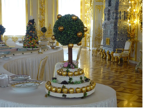 エカテリーナ2世は、宮殿でよく晩さん会を開いていましたが、その時のテーブルセッティングが再現されています。