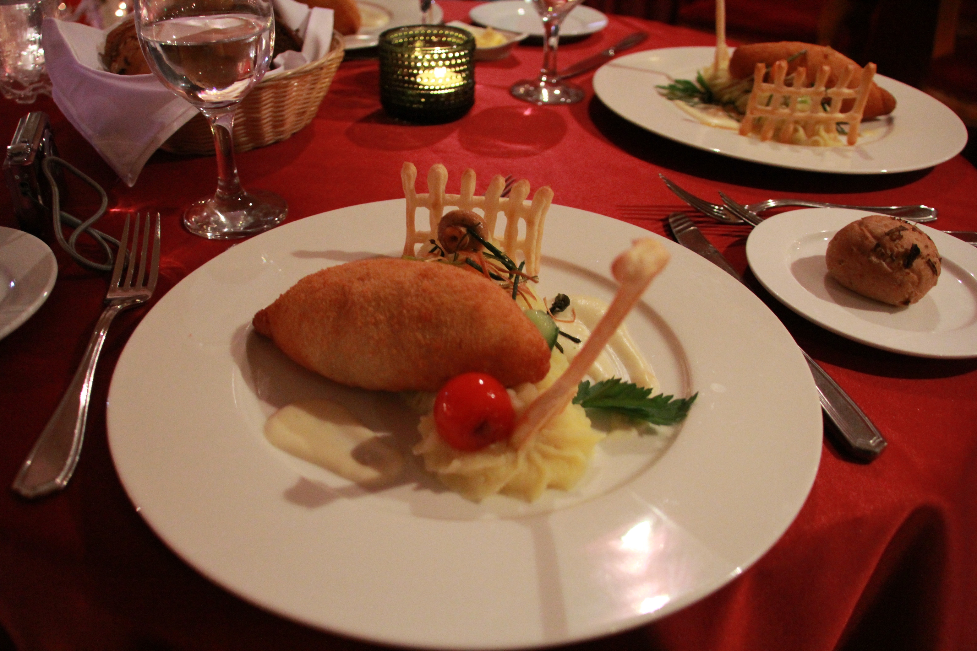 今日のメインはキエフ風鶏のカツレツ。これはロシアのレストランの定番で、これがないとロシアに来た感じがしません。盛り付けも非常にきれいで、楽しい食事となりました。