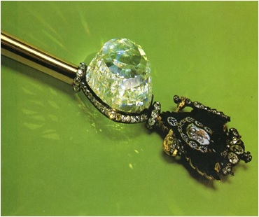 このダイヤモンド庫ではエカテリーナ2世の笏に装着されている伝説のダイヤモンド「オルロフ」(«Орлов»)で、この卵をふたつに割ったような姿のダイヤはインドで見つかった最大のダイヤモンドと考えられています。一説には、元々400カラットであった「オルロフ」はカッティングの際に189カラットほどにまで小さくなってしまったといわれている。