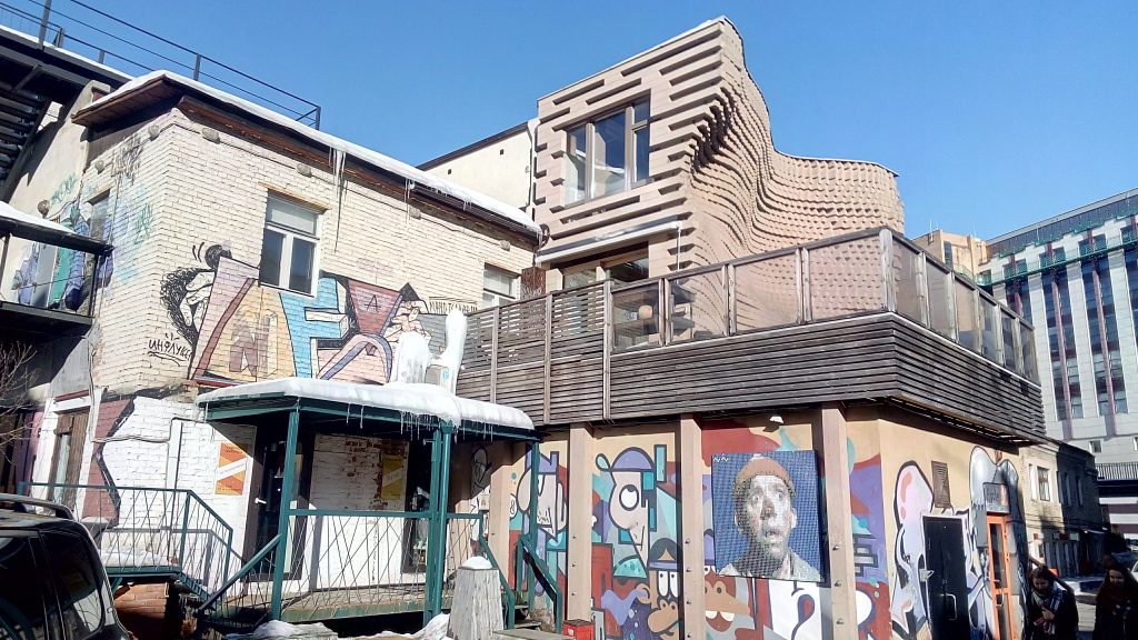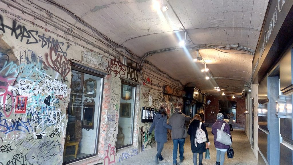 ここは工場の跡地らしさを残しているので、決して新しい雰囲気ではありません。落書きも残したままですし、何となく初めて入る時は、「ここ、一般人が入っていいのかなあ?」ドキドキしますが、ロシアではハッタリも大切。堂々と入りましょう!