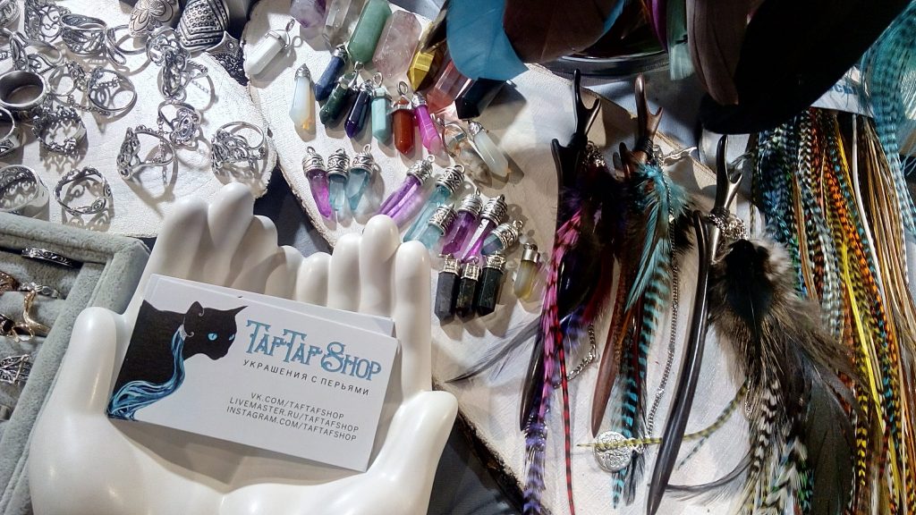 風船で飾られた小さい入口を入ってみると、会場内にはアーティストの手作りの作品が所狭しと並べられていました。