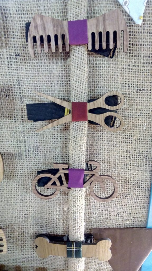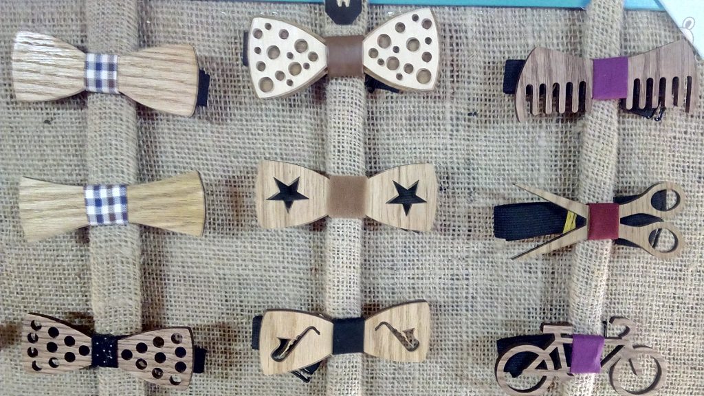 木製の蝶ネクタイがありました。遊び心があって可愛いですね。
