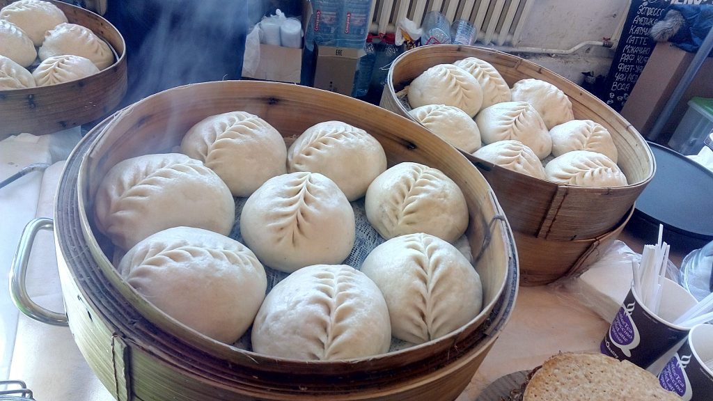 大きくてホカホカの肉まん。聞いてみたら、これは韓国の肉まんだそうです。