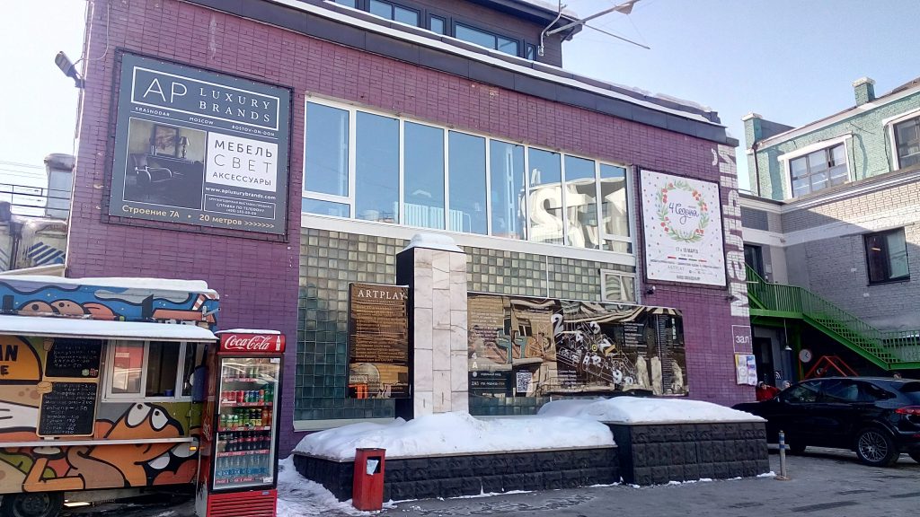 ARTPLAY アートプレイ は、様々な職業のアーティストが集まって活動を行っている場所。スタジオ、ワークショップ、ショールーム、オフィスはもちろん、映画館やコンサートホール、レストランやカフェなどが並びます。ここは、モスクワの工具メーカー『マノメトル』の工場跡地。雑然と立ち並んだいくつもの建物にペイントやリフォームが施され、2008年に、何とも個性的なビジネスセンターに生まれ変わりました。
