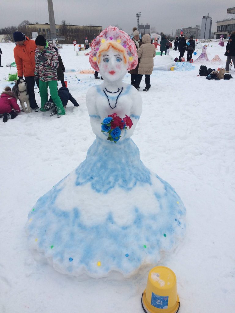 かなり人間に近いフォルムの雪娘。ブルーのドレスに華やかな髪飾り、花束を手にしてとってもゴージャスです。