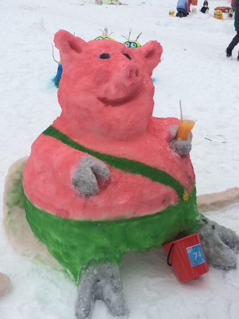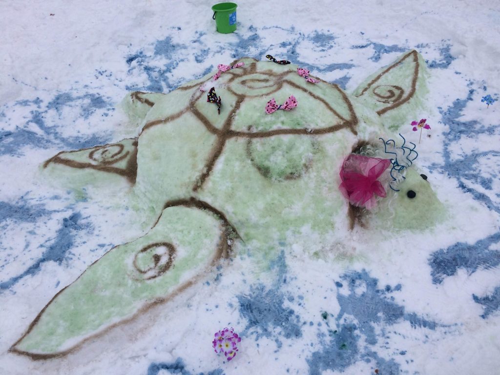 個人的には、この作品が一番すごいと思いました。雪だるまコンテストというより、芸術作品といった感じ。氷の下の海がとてもリアルで、本当に感心してしまいました。