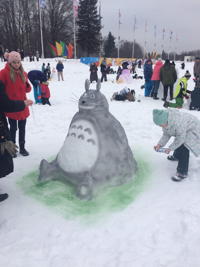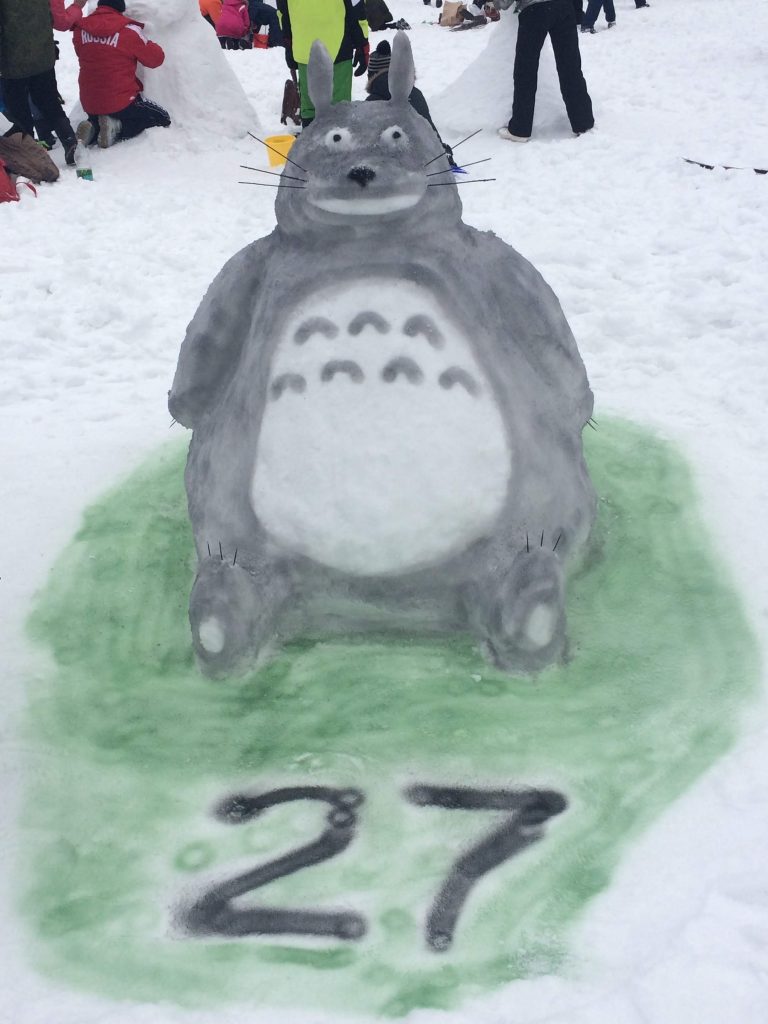でっかいネズミかなー?と表にまわってみたら、日本の宝『トトロ』でした。周りの雪を緑にペインティングして、森のイメージを出していますね。