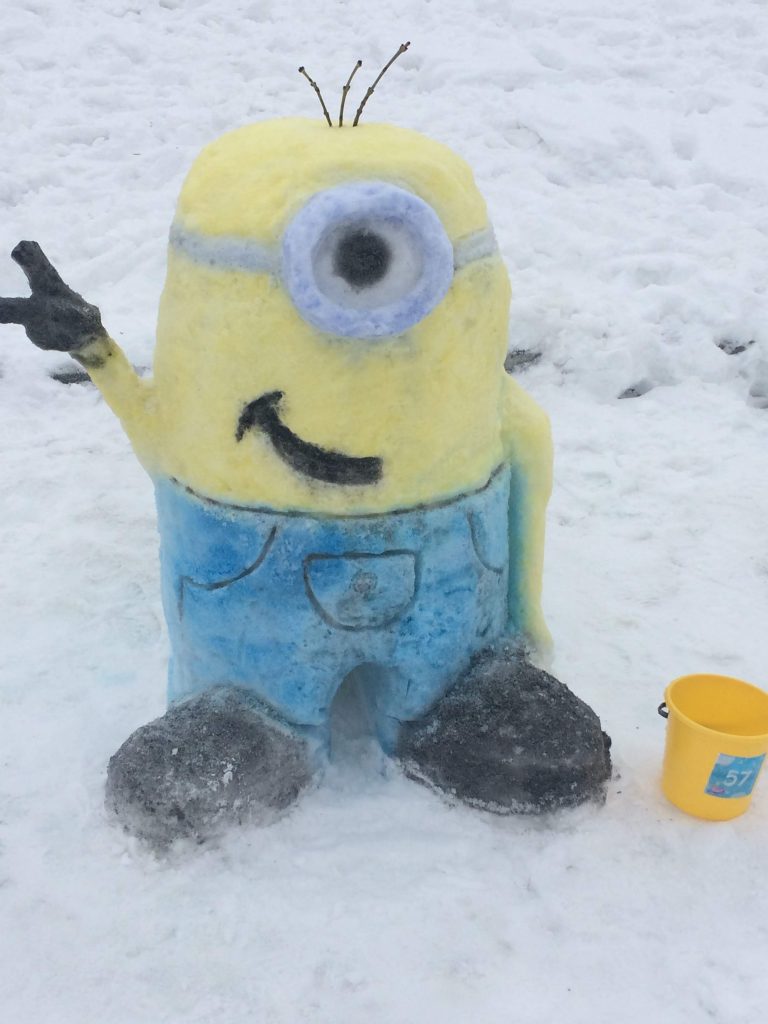カラースプレーを持参してカラフルに色づけすれば、世界で愛されるキャラクターだってできちゃいます。雪だるまの域を超えてきましたね!