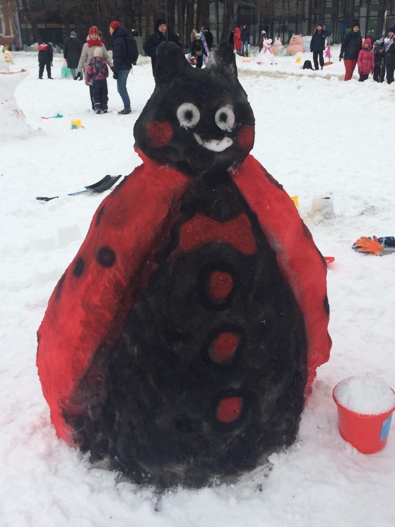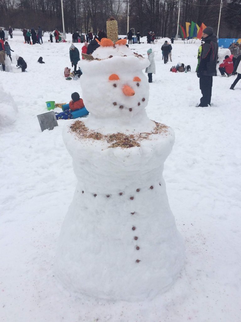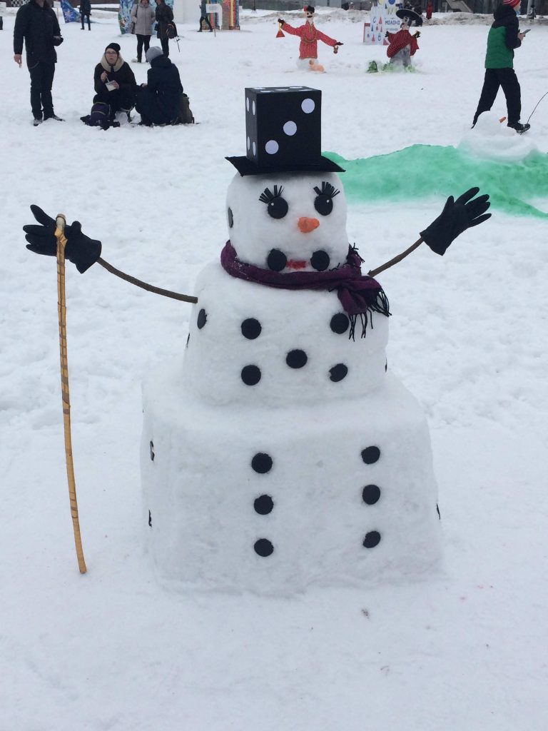 通常ロシアの雪だるまは、日本とは違い、基本的に「頭、上半身、下半身」の 3パーツからできています。よく公園などでも見かけます。