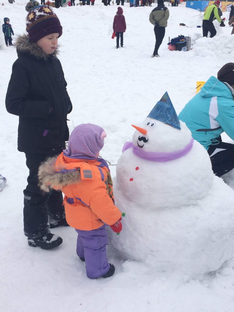 11:30から始まったこのイベント。会場のあちこちで雪だるま作りが進んでいます。雪だるまというより、雪のオブジェと言う感じで形やアイディアは何でもあり。大人も子供も氷点下の中、スキーウエアに身を包み、夢中で作っています。