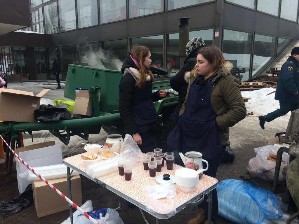 紅茶とパンを配っているお姉さん達も寒そうです。すぐに紅茶が冷めてしまうので、大変そうでした。