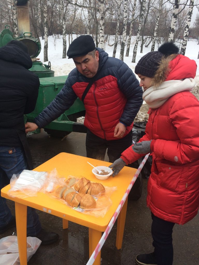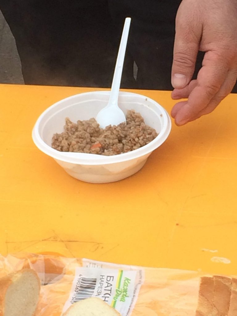 蕎麦の実のおかゆは、ロシアのソウルフード。これを食べて一休みした後は、また雪だるまの完成を目指して頑張ります。