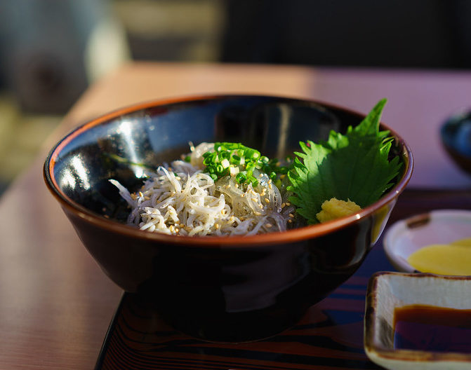 - Ширасу-дон — чаша риса с мелкими белыми рыбками ширасу.