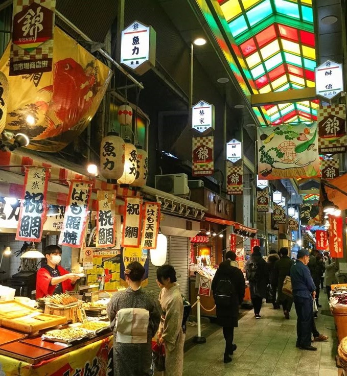Этот рынок, расположенный в центре Киото, называют «кухней Киото». Он существует более 400 лет и известен своим огромным выбором свежих продуктов, традиционных деликатесов и готовой еды. Здесь можно попробовать:
